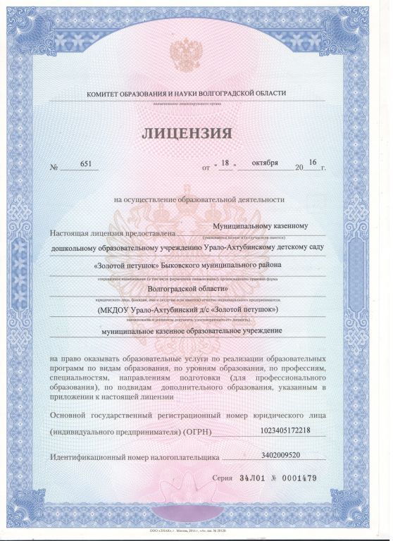 | Полное наименование образовательной организации* | Муниципальное казенное дошкольное образовательное учреждение Урало-Ахтубинский детский сад «Золотой петушок»Быковского муниципального района Волгоградской области. |